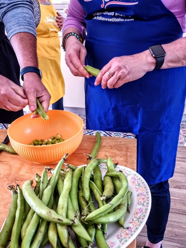 - Put the single fava beans in boiling water for a couple of minutes (just the time it will be easy to remove the skin)