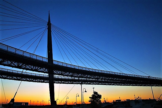 The Ponte del Mare, the largest cycle-pedestrian bridge in Italy, with its sinuous shape, was designed by the Tyrolean architect Pichler and connects the two banks of Pescara, characterized by the presence of the Trabocchi.