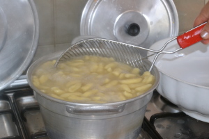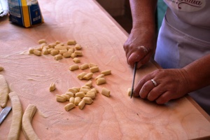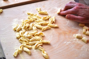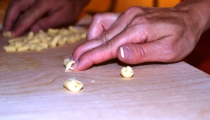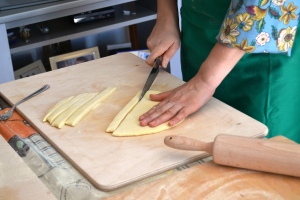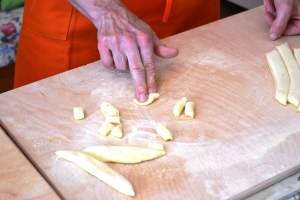7. Press the cylinder by pulling on the board and turning it on himself, helping with the index finger / middle, so you get the cavatelli.