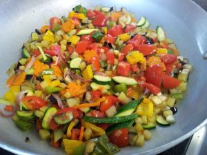 1. Cut vegetables into cubes and place in a saucepan with a little bit of extra virgin olive oil.