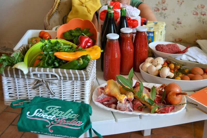 - Almost everything we’ll eat is produced in the farm (wheat to produce the organic flour to make different kinds of breads, cookies and fresh pasta together with eggs from their hens, organic extra virgin olive oil, wines, liquors, juices, jams, cheeses, many varieties of salami, meats and vegetables)
