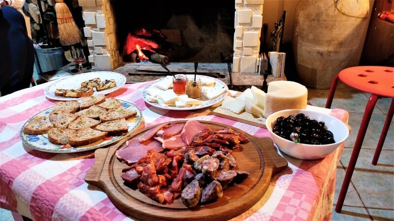 - After collecting some organic wine from their winery, we’ll have an aperitif including a taste of their production: cheeses, salami and extra virgin olive oil