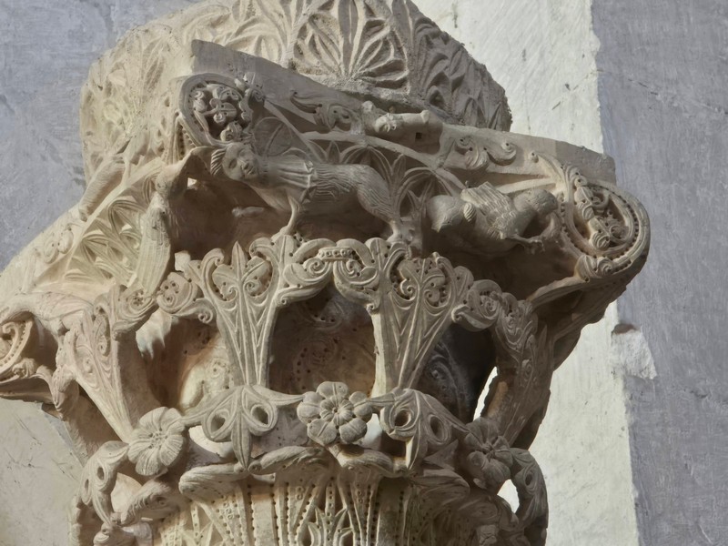 The capitals of the columns are decorated with unique motifs depicting animals, plants, and stylized figures, each with a story to tell.