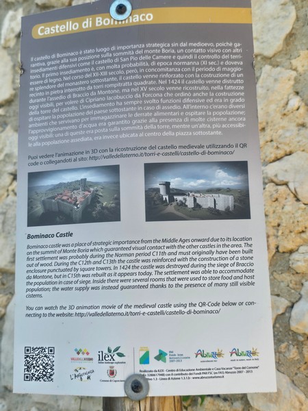 Just a short walk from the churches, on a hill overlooking the village, stand the ruins of the Bominaco Castle.