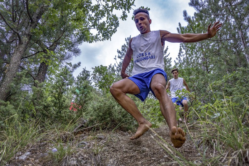 During the event, men from the village run barefoot from the top of Colle Ardinghi to the Church of the Madonna of Loreto, covering a difficult 3 km path on rocky and uneven terrain.