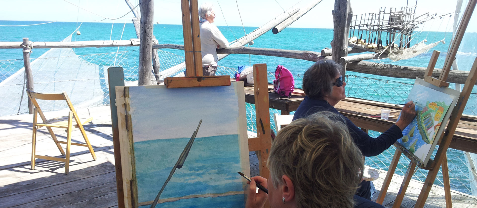According to your interests and needs we could add/eliminate activities and days to create a tailor-made holiday for your U3A/organization group. We can accommodate groups of up to 50 people – although this is not possible for all the activities we offer such us cooking, painting, pottery or Italian language classes. Please see our Tailor-made section. As well as cooking, painting, pottery and Italian language classes, which include wine tastings and other goodies, there’s a wide choice of other activities to build into a tailor-made holiday. Some examples of the possible activities are a visit to local castles, a wine tasting class, visits to wineries and olive oil mills, grape harvest, olive harvest, truffle hunting, cycling, fishing from a trabocco (an ancient fishing equipment typical to Abruzzo), cheese making, day trips to Rome, Naples or other destinations and many more activities.