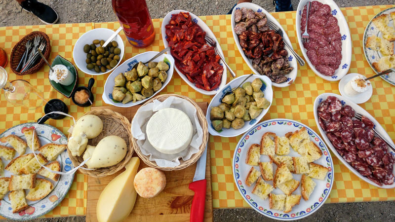 • After collecting some organic wine from their winery, we’ll have an aperitif including a taste of their production: cheeses, salami and extra virgin olive oil