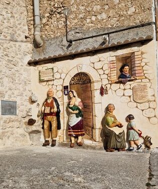 In Pacentro, artistic craftsmanship boasts a secular tradition and consists of the processing of the white stone of the Maiella, terracotta figurines for the nativity scene, crochet lace, and Abruzzese women’s costumes.
