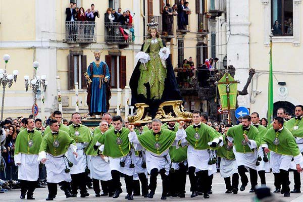 May is also known for its festivals. Cocullo a small town located in the Province of L’Aquila, celebrates its patron saint’s holiday with the so-called “Festa dei Serpari”, in which the patron saint’s statue is transported in procession covered by many snakes, later released in the surrounding woods.