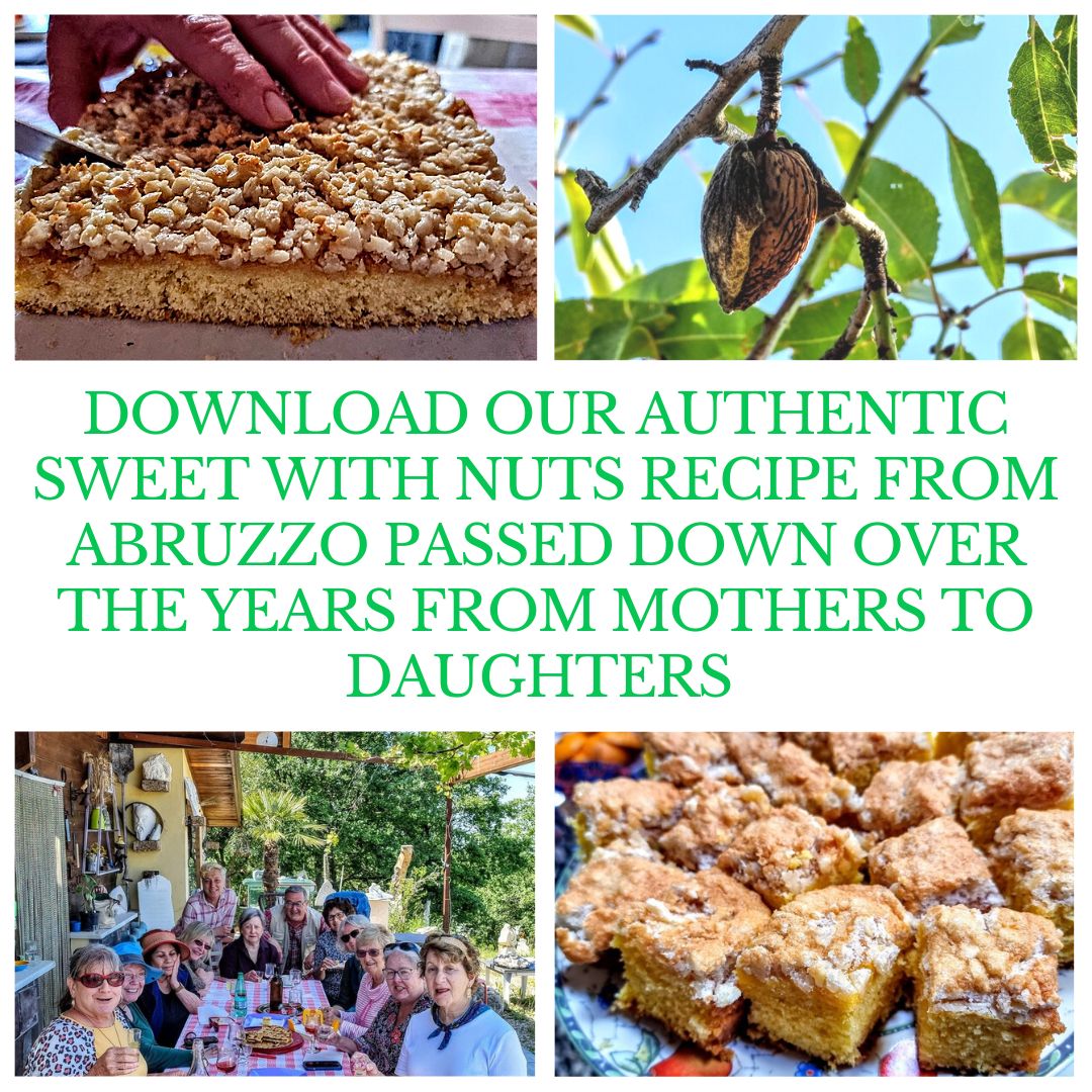 During visits to their artistic farm, it’s a ritual to gather the fruits from the almond tree, a silent witness to a tradition that is renewed from generation to generation, so much so that we gladly share with you the much-desired recipe, so that you can continue to taste a piece of Abruzzo even in your homes.